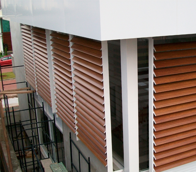 Brises de alumínio fixo podem ser instaladas na vertical ou na horizontal para proporcionar aspecto moderno às fachadas das mais variadas construções e, ainda, possui a dupla função de eliminar a incidência direta dos raios solares e facilitar a normal circulação do ar possibilitando uma atmosfera agradável ao ambiente interno.