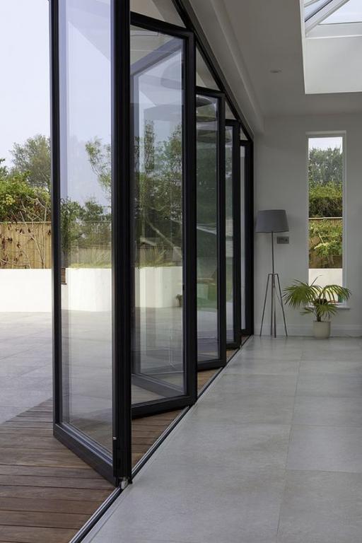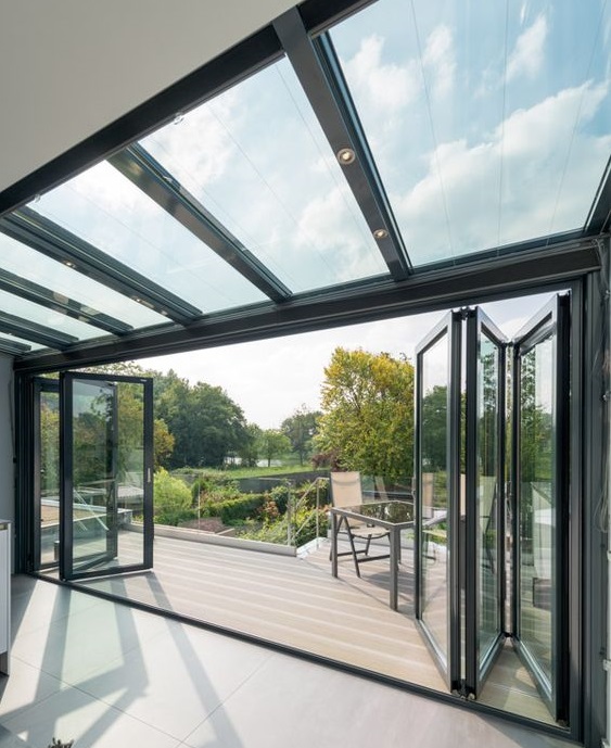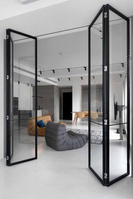 A Porta Camarão de Vidro e Alumínio é uma porta de correr com dobramento de folhas. Ela pode ser aberta total ou parcialmente, o que permite que você decida se quer isolar ou integrar visualmente as áreas divididas por ela.